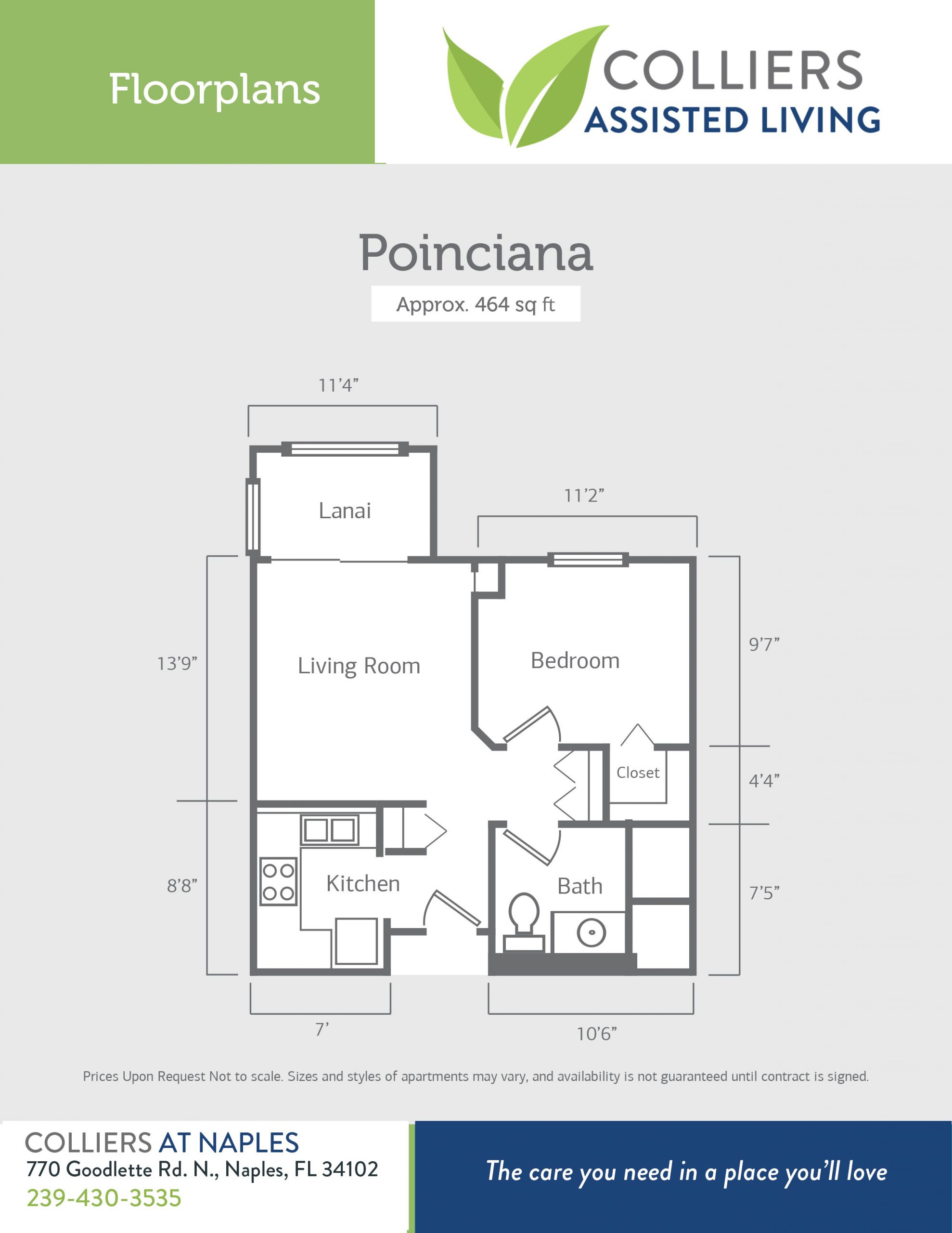 We offer a variety of Suites to suit your lifestyle and budget. Prior to move in, residents will have the opportunity to select their private accommodations from a variety of apartment options that that fit their needs and lifestyle.